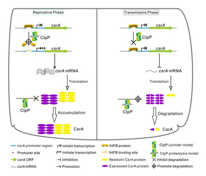 图1 蛋白酶ClpP调控生长与毒力因子CsrA的表达