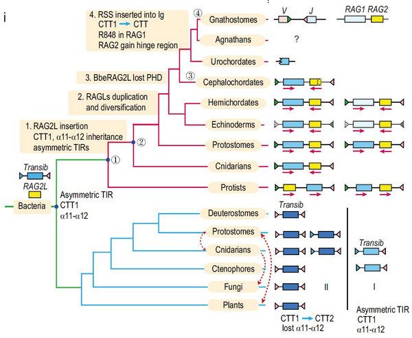 图 RAG转座子的起源及演化模式