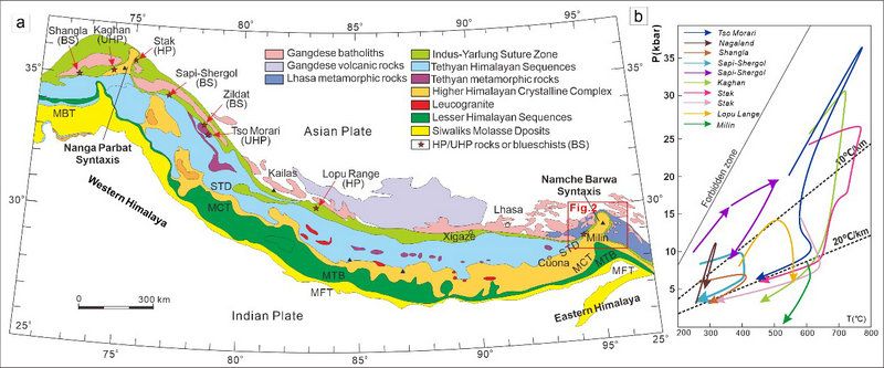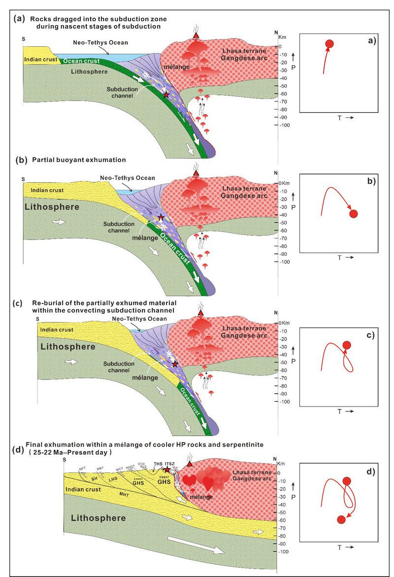 中大新闻网讯(通讯员尹常青、李旺超)青藏高原雅鲁藏布江缝合带(IYSZ)是新特提斯洋的闭合、印度板块与欧亚板块在新生代陆-陆碰撞作用下的产物,其中出露的超/高压-低温变质岩记录了洋壳或陆壳物质通过俯冲作用沿着俯冲隧道内被带入到地球深部而经历低温、高压变质作用的过程。然而,这些岩石的变质过程,俯冲最大深度,折返速率,以及折返机制仍然缺乏了解或存在争议。