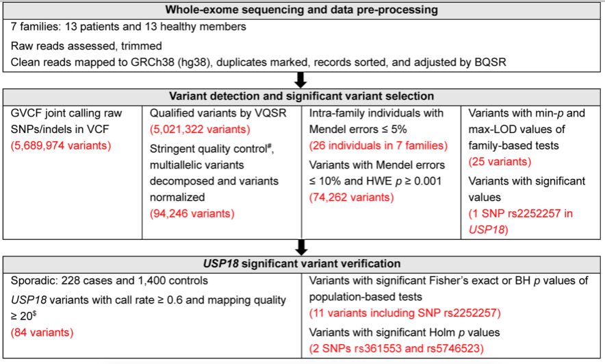 近日,bat365在线中国登录入口附属第三医院脑病中心神经免疫邱伟、余青芬团队在国际知名神经病学期刊Journal of Neurology, Neurosurgery and Psychiatry (JNNP)发表了题为“Clinical and genetic analysis of familial neuromyelitis optica spectrum disorder in Chinese: associated with ubiquitin-specific peptidase USP18 gene variants”的原创性研究成果。研究回溯了国内四个知名神经免疫性疾病中心2016-2020年间诊治的NMOSD患者的临床资料,共发现10个NMOSD家系,并对这些家系成员进行外显子组测序和临床特征研究。结果发现,我国NMOSD患者中家族性患者约占0.87%,家族性患者的发病严重程度高于散发患者。位于泛素特异性肽酶USP18基因启动子和增强子区域上的SNP rs2252257多态性可能参与家族性NMOSD的发病。