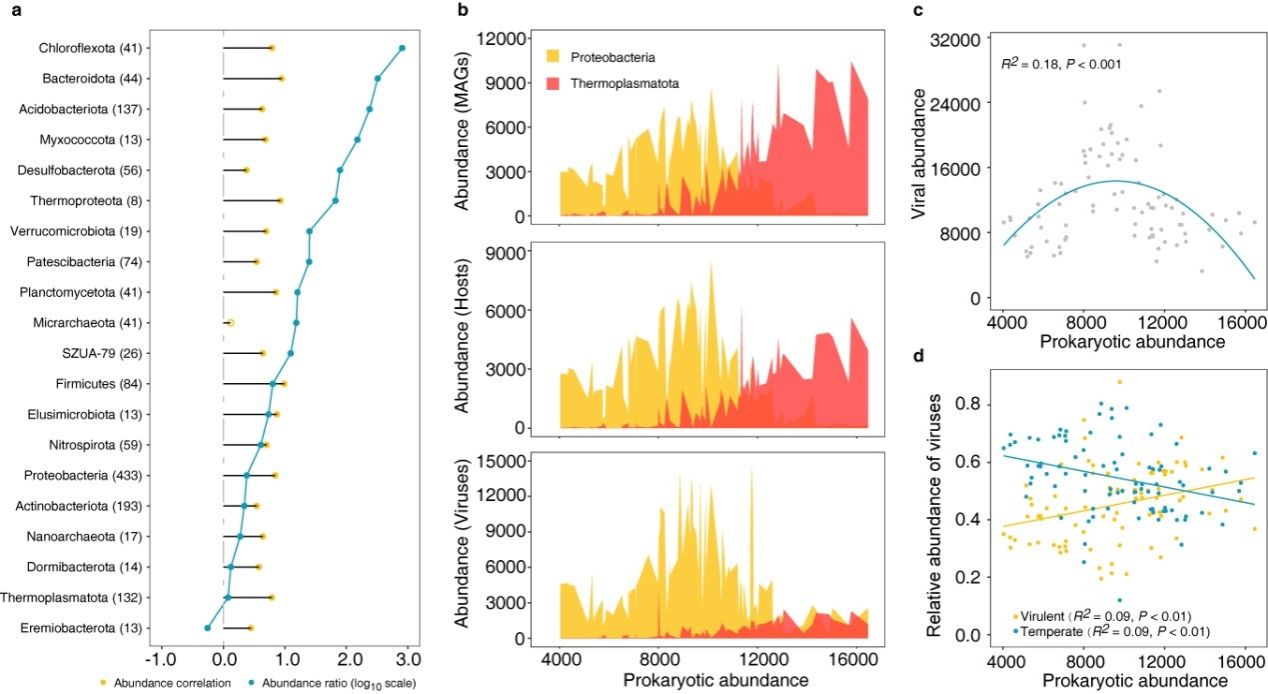 近日,bat365在线中国登录入口黄立南教授课题组利用大规模宏基因组数据,探究酸性矿山废水(acid mine drainage, AMD)底泥环境中病毒物种和功能的生物地理分布及其对原核微生物群落、理化因子、气候条件以及地理距离的响应,促进了对于自然环境中病毒-宿主-环境三者间相互作用关系的理解。