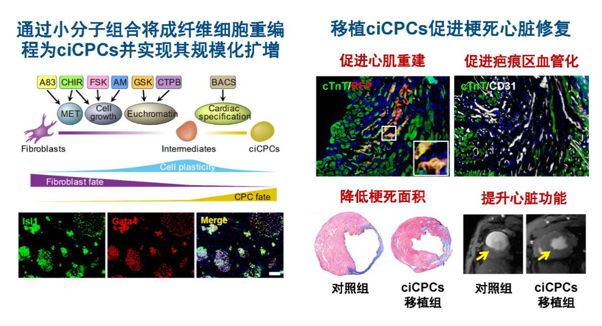 图注:通过体细胞重编程获得的心血管祖细胞治疗心肌梗死