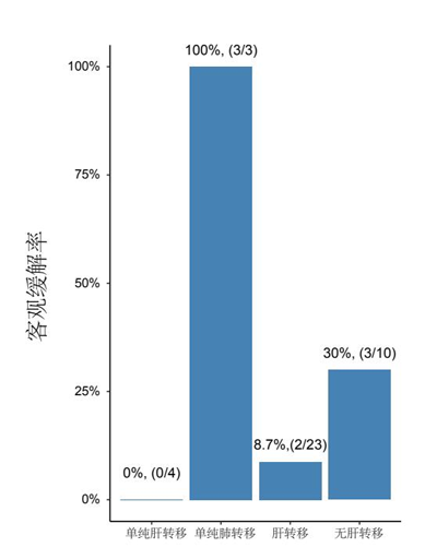 只有肝转移、只有肺转移、有肝转移、无肝转移患者的客观反应率