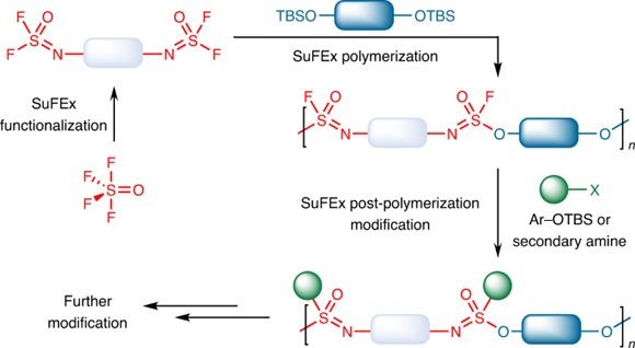该论文发表在Nature Chemistry上,题目为“SuFExable polymers with helical structures derived from thionyl tetrafluoride”。李苏华教授为文章的第一作者,李苏华教授、Peng Wu教授、Han Zuilhof教授、John Moses教授、K. Barry Sharpless教授为共同通讯作者。该研究工作得到国家自然科学基金、广东省自然科学基金、广东省珠江人才计划等基金的支持。多维度点击化学在发展之初得到了董佳家博士(现为中科院上海有机化学研究所研究员)的有益建议。