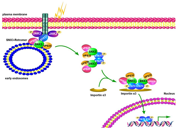 SNX3-Retromer介导STAT3磷酸化及入核转运从而诱导心衰的工作模式图