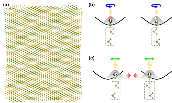 考虑由两层相同的过渡金属硫化物堆叠组成的同质结系统,当两层之间有一个接近0度的相对转角时,能量最低的激子会被束缚在摩尔超原胞势能最低的特殊位置处,见图1(b)。这些局域激子携带垂直平面的静电偶极矩,从而组成一个具有较强偶极-偶极相互作用的激子超晶格。理论分析指出,该系统中存在一种反常发光的量子现象:电偶极相互作用导致的1埃数量级的微小位移会导致激子发光效率的急剧增加,并且将放出光子的偏振性质由圆偏振变成线偏振(见图1(c)),其中光子线偏振的方向与位移矢量的方向一一对应。这样的反常发光可作为摩尔超晶格中激子所处量子态的光学探测手段,也可用于探测外界的大分子偶极场。此外,激发或湮灭一个激子可以改变电偶极势场,从而改变周围其余激子的发光效率和偏振性质,导致一种新颖的非线性光学效应。这些发现说明,双层过渡金属硫化物中的激子是一种全新的可用于探索多体物理和量子光学应用的系统。