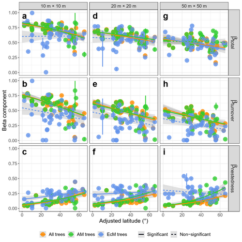 生物多样性纬度梯度格局及其形成机制一直是生物地理学和宏观生态学的核心科学问题之一。树木β多样性描述了树木群落间的物种组成差异,联系着局域尺度的α多样性和区域尺度的γ多样性,能反映树木群落构建和多样性维持的潜在机制。因此,树木β多样性纬度梯度格局研究受到广泛关注。然而,前人对树木β多样性纬度梯度格局的研究往往只关注气候、地形等环境因素的影响,忽略了生物因素的重要作用。作为影响树木存活和生长的最重要生物因子之一,不同类型的菌根真菌能与不同树木共生,形成不同类型的菌根树种。不同类型的菌根树种受到的植物-土壤反馈作用以及对气候等环境因素的适应能力不同,因此,对树木多样性的形成与维持具有不同的影响。该研究探讨了不同类型的菌根树种如何影响全球树木β多样性纬度格局。