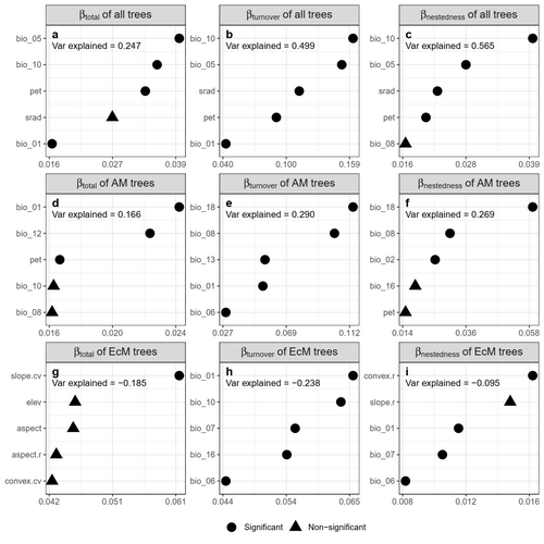 图2. 20 m × 20 m尺度下环境因子对树木β多样性的影响