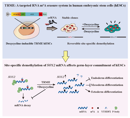 图 hESCs单位点m6A编辑工具的建立及其在细胞命运调控研究中的应用