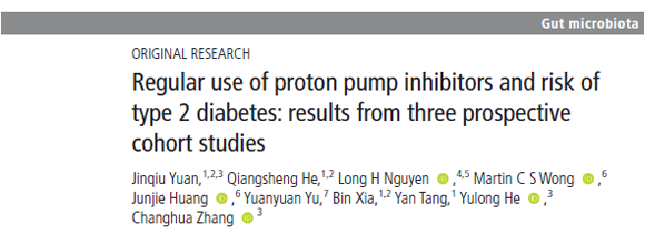 课题组最新发表的一篇论文关注了质子泵抑制剂(Proton Pump Inhibitors, PPIs)与2型糖尿病的发病风险。PPIs是全球使用最多的十大药物之一,广泛应用于胃食管反流等胃酸相关疾病的治疗。有研究证实长期使用PPIs可以引起肠道菌群紊乱,而菌群紊乱又与多种代谢性疾病相关,因此PPIs可能会升高2型糖尿病的风险。