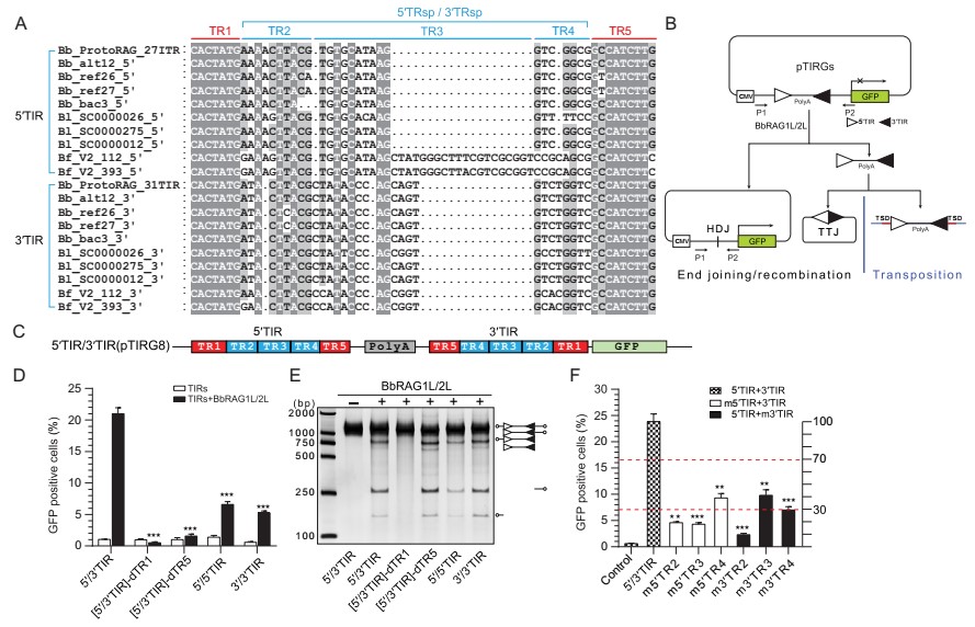 图4.ProtoRAG的高效重组活性依赖其对非对称TIR序列的识别