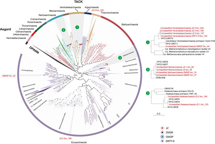 甲烷是地球上重要能源物质,具有极高的工业应用价值,同时也是一种温室气体,对诸如碳素的生物地球化学循环和全球气候变化有着深远影响。已有研究表明微生物介导的产甲烷作用主要由广古菌门(Euryarchaeota)中少量支系完成,近期研究却发现除传统的广古菌门外,其它古菌门中,如深古菌门(Bathyarchaeota)、韦斯特古菌门(Verstraetearchaeota)等也发现相关微生物具有甲烷代谢能力。即便如此,人们对未知甲烷代谢古菌的探索仍少之又少,其生态功能以及进化起源也尚未可知。