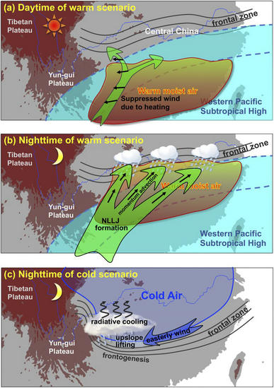 Du, Y., and G. Chen, 2019: Heavy Rainfall Associated with Double Low-Level Jets over Southern China. Part II: Convection Initiation. Monthly Weather Review, 147 (2), 543–565. https://doi.org/10.1175/MWR-D-18-0102.1