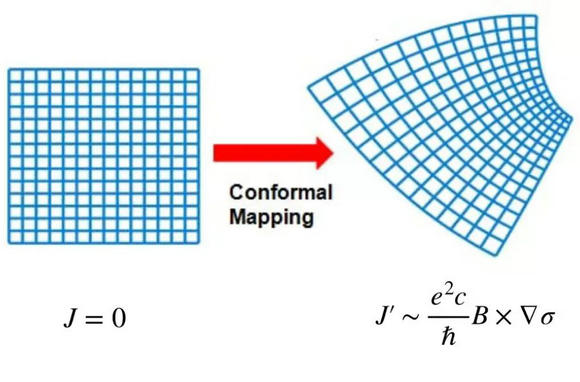 一开始三位同学对这个问题都感到比较陌生,对一些相关的知识也不够了解,但在苗荣欣副教授的指导下,通过学习一些初级的广义相对论和规范引力对偶的基础知识以及和老师的积极交流,课题小组的同学最终推导出了反常电流的一般形式。主要结果如下图所示: 其左图为有背景磁场的平坦时空,其电流为零。右图为共形变换后新的时空。由于量子反常,新时空中的电流不再为零,而是正比于磁场和共形因子的梯度。