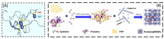 (A)金属巯基蛋白富集金属离子的示意图 (B)半胱氨酸增强的仿生封装原理
