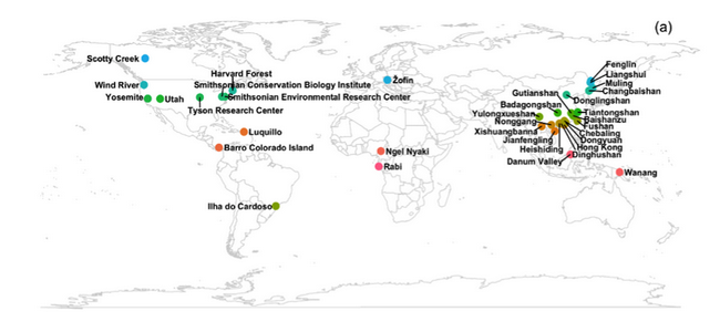 近日,我校生命科学学院储诚进教授课题组在生态学领域顶级期刊Ecology Letters(IF5 = 11.775)上发表了题为“Direct and indirect effects of climate on richness drive the latitudinal diversity gradient in forest trees”的学术论文。该项研究基于全球35个大型固定森林样地(CTFS-ForestGEO)的调查数据(样地分布于25.10° S—61.30° N之间,面积从9公顷至60公顷不等),系统地研究了气候和森林林分特征对树木纬度多样性梯度格局的影响。储诚进教授为该论文的唯一第一作者和唯一通讯作者,我校生命科学学院为唯一作者单位。该项工作联合了国际上48个科研院所的73位科研人员,得到了国家重点研发计划和国家自然科学基金等项目的资助。