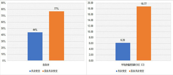 二代测序结果发现超过一半的患者存在EGFR基因以外的基因改变(共存突变)。存在共存突变的患者,有效率只有44%,平均肿瘤控制时间6.2个月,平均生存期22.7个月;而不存在共存突变的患者,有效率达到77%,平均肿瘤控制时间18.77个月。