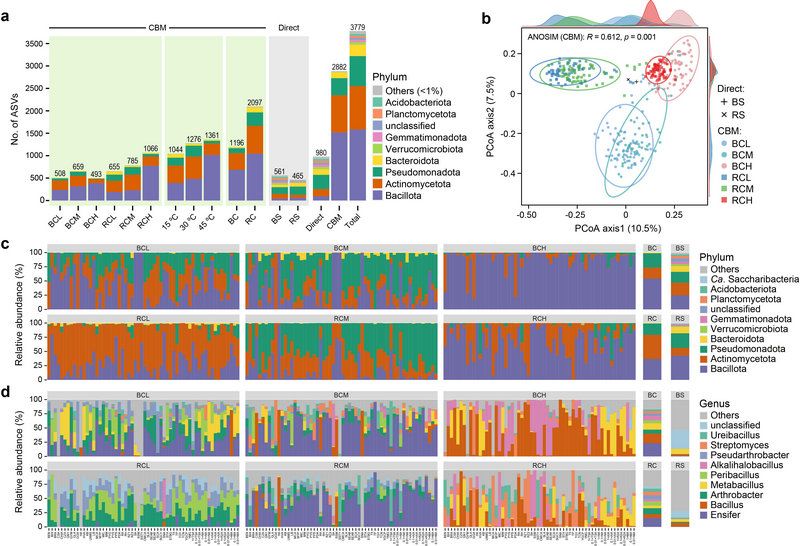 图3. 原始土壤及其相关培养物的细菌多样性及组成