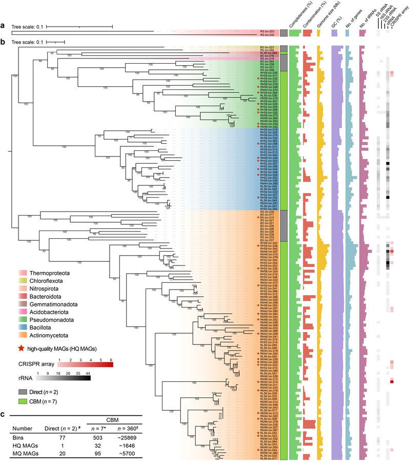 图2. 148个高质量或中质量MAGs的系统发育树及概况