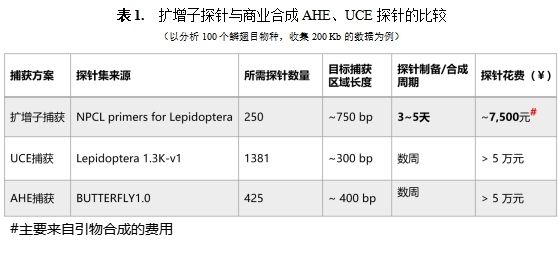 表1. 扩增子探针与商业合成AHE、UCE探针的比较