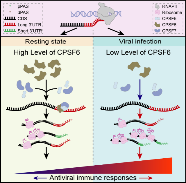 CPSF6通过APA调控细胞抗病毒天然免疫应答的机制图