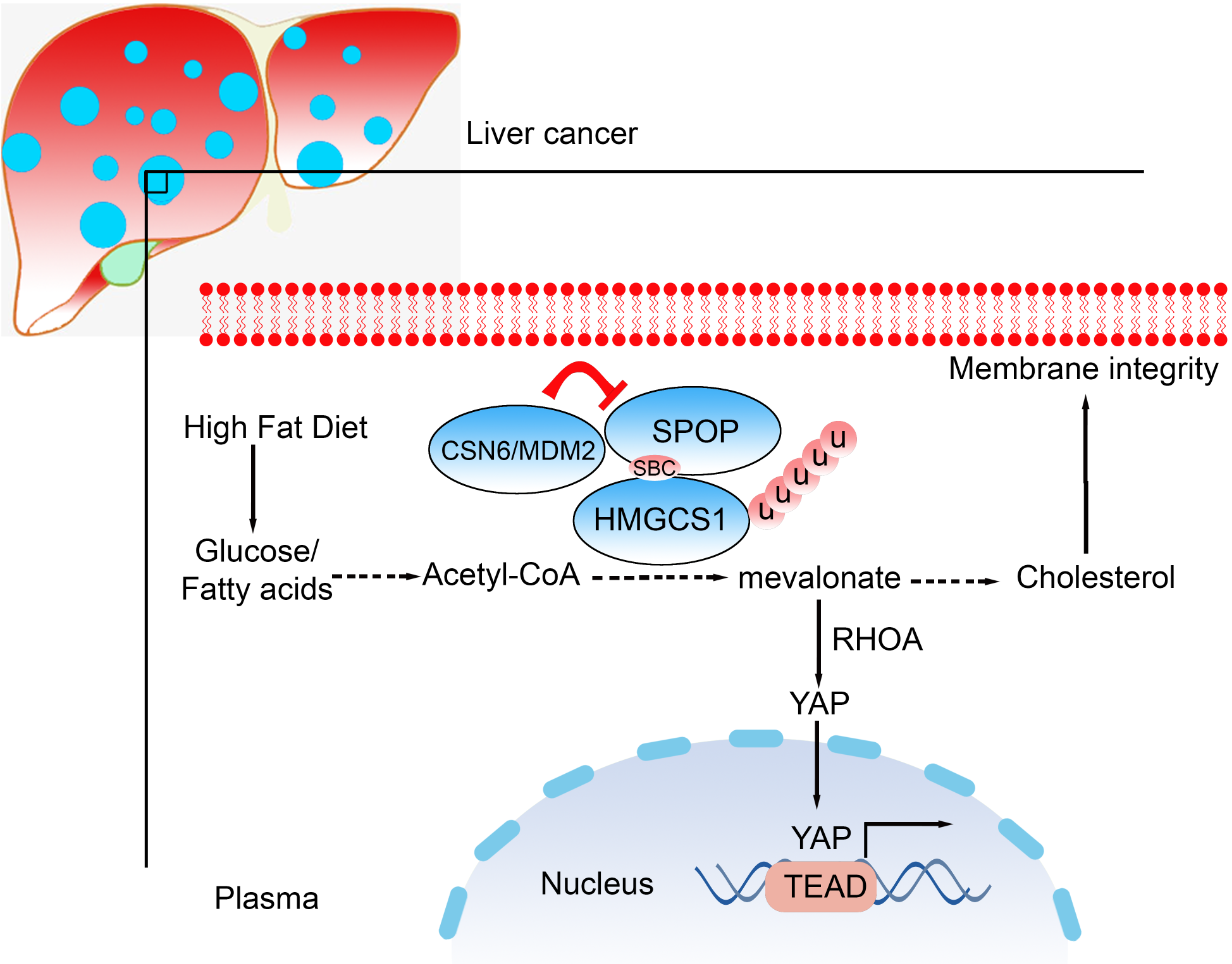 中大新闻网讯(通讯员张婷婷、戴希安、简文杨)近日,附属第六医院胃肠病学研究所李孟鸿教授及其合作团队在Advanced Science(2022IF=15.1)杂志上发表了题为 “CSN6-SPOP-HMGCS1 Axis Promotes Hepatocellular Carcinoma Progression via YAP1 Activation” 的研究论文。该研究发现COP9信号小体亚基6 (CSN6) 通过拮抗斑点型POZ蛋白 (SPOP) 泛素连接酶稳定HMGCS1,进而激活YAP1促进肿瘤的生长,为靶向肿瘤代谢异常的精准治疗提供了新思路。