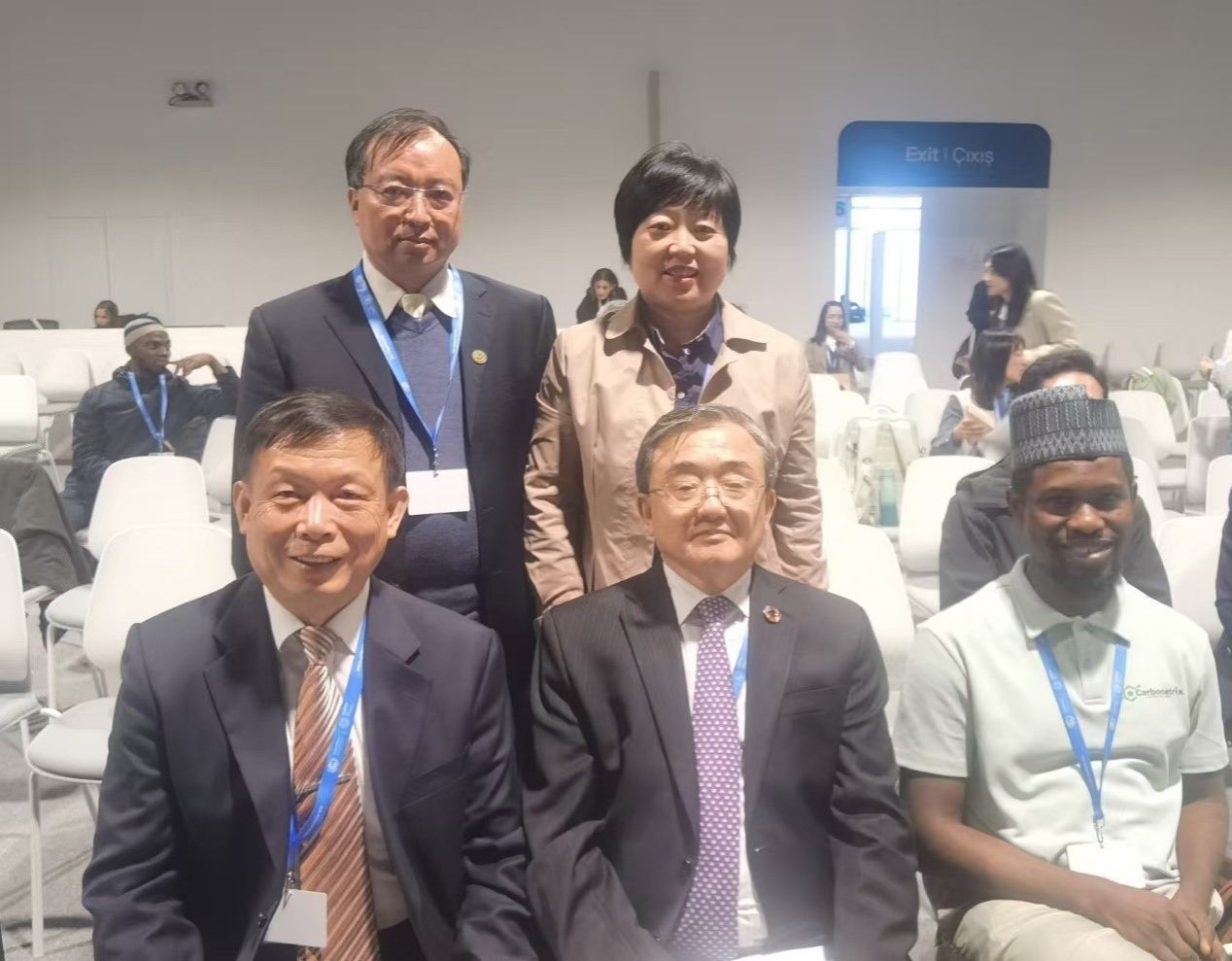 董文杰教授(后排左一)和中国国家气候事务特使刘振民先生(前排中)在会议现场