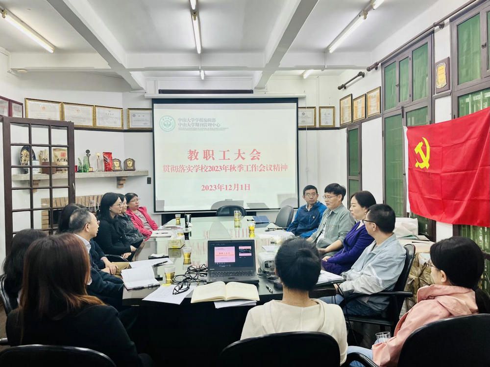 中大新闻网讯(通讯员宋宇)12月1日下午,学报编辑部(期刊管理中心)在南校园编辑部会议室召开全体教职工大会专题传达学习学校2023年秋季工作会议精神,编辑部主任彭玉平、各版主编、副主编以及全体教职工出席会议。