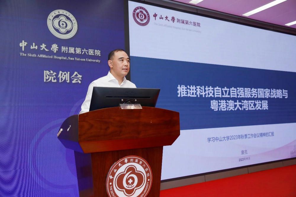 会上,附属第六医院副院长康亮重点传达了高松校长以“推进科技自立自强,服务国家战略与粤港澳大湾区发展”为主题的大会报告,报告指明了学校科研工作高质量内涵式发展的机遇、路径、理念与措施,强调了学校坚持教育、科技、人才一体统筹推进,做到“立足湾区与面向世界、学术前沿与学科交叉、目标导向与自由探索、科学价值与应用价值、科研创新与制度创新”五个结合,努力为全面建设社会主义现代化国家提供重要支撑。康亮副院长结合医院科研工作提出,医院要进一步提高站位,积极响应国家和大学的号召,主动与兄弟单位合作,发挥优势特色,落实重大项目建设,助力粤港澳大湾区协同发展。