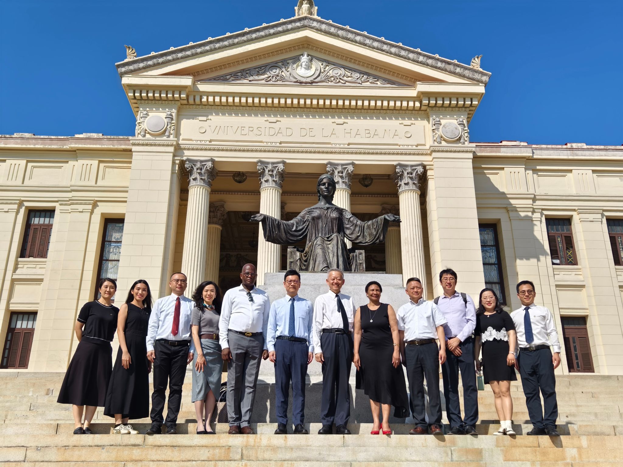 代表团首站访问了古巴哈瓦那大学,与该校校长米里亚姆·尼科多·加西亚(MIRIAM NICADO GARCÍA)、常务副校长迪奥尼西奥·扎尔迪瓦尔·席尔瓦(DIONISIO ZALDIVAR SILVA)和相关学院代表进行座谈交流。哈瓦那大学是古巴规模最大历史最悠久的大学,其医学教育和研究方面具有较强优势。陈春声书记介绍了学校近年发展的主要情况,以及与拉美和加勒比国家在国别区域研究、援建医学实验室、孔子学院/孔子课堂建设、语言人才培养和援外医疗等层面开展合作交流的情况。会议期间,两校签署了正式校际合作协议,确立未来在医疗卫生、公共管理、农业以及语言学等多领域跨学科的合作意向。