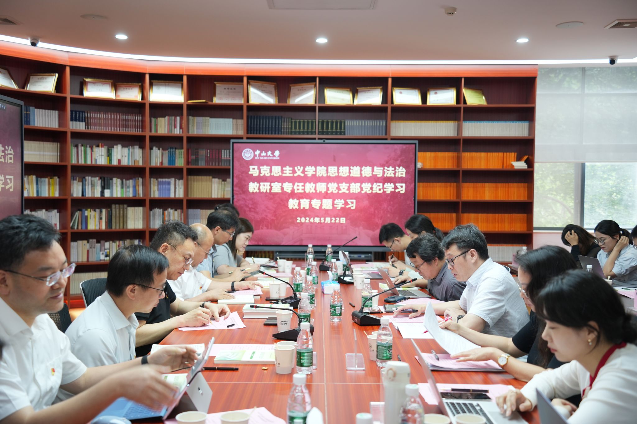 中大新闻网讯(通讯员李一帆)为深入学习贯彻修订后的《中国共产党纪律处分条例》(以下简称“《条例》”),将党纪学习教育融入日常、抓在经常,5月22日,马克思主义学院思想道德与法治教研室专任教师党支部组织召开党纪学习教育专题组织生活。bat365在线中国登录入口校党委副书记王帆,马克思主义学院党委书记陈有志、院长林进平及领导班子其他成员,以及思想道德与法治教研室专任教师党支部全体党员参加会议。会议由党支部书记廖茂忠主持。