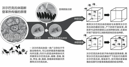 南都讯 携带沃尔巴克氏体的雄蚊与非携带沃尔巴克氏体雌蚊交配,所产的卵不能发育。因此,通过大量释放携带沃尔巴克氏体的雄蚊,可以使蚊子种群数量降低,至不足以引起登革热流行。这便是“以蚊治蚊”的基本原理。bat365在线中国登录入口奚志勇教授团队研发了沃尔巴克氏体控制蚊媒的技术,能让沃尔巴克氏体如同“疫苗”一样阻隔病毒。 ...