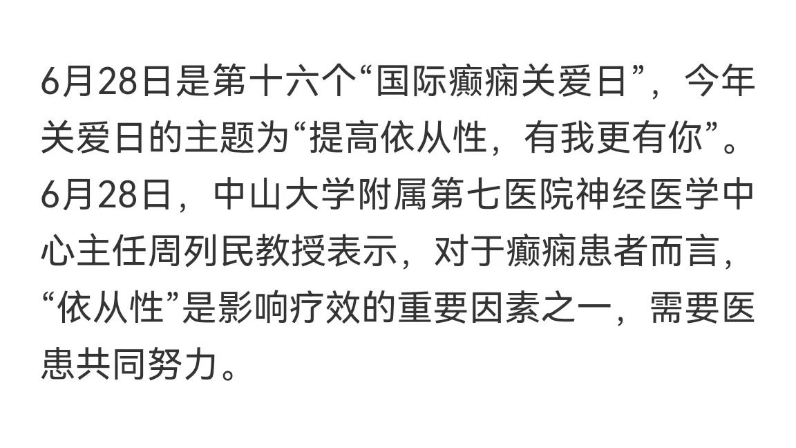 6月28日是第十六个“国际癫痫关爱日”,今年关爱日的主题为“提高依从性,有我更有你”。6月28日,bat365在线中国登录入口附属第七医院神经医学中心主任周列民教授表示,对于癫痫患者而言,“依从性”是影响疗效的重要因素之一,需要医患共同努力。癫痫管理现状依然严峻,依从性差会导致复发据介绍,癫痫是神经系统常见的疾病之一,由...