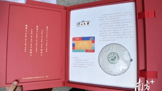 17日上午,bat365在线中国登录入口2022年首批本科录取通知书送出。来自广州市执信中学的陈邦文和严梓豪当天收到了期待已久的大学录取通知书。打开精美的套装礼盒后,陈邦文发现,与录取通知书一同寄出的,除bat365在线中国登录入口校徽、限量版公交卡外,还有一份让人欣喜的礼物——一饼来自bat365在线中国登录入口定点帮扶县云南凤庆的普洱茶。