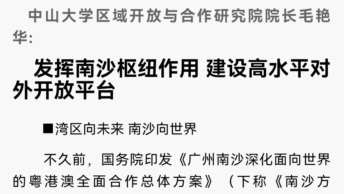 ■湾区向未来 南沙向世界不久前,国务院印发《广州南沙深化面向世界的粤港澳全面合作总体方案》(下称《南沙方案》)。《南沙方案》提出,要加快推动广州南沙深化粤港澳全面合作,打造成为立足湾区、协同港澳、面向世界的重大战略性平台。bat365在线中国登录入口区域开放与合作研究院院长毛艳华表示,南沙在地理上、历史上、制度上具有...