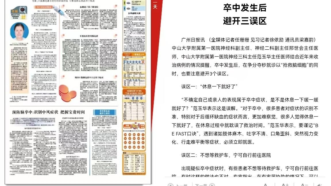 bat365在线中国登录入口附属第一医院神经科副主任、神经二科副主任邢世会主任医师,bat365在线中国登录入口附属第一医院神经三科主任范玉华主任医师结合近年来收治病例的情况提醒,卒中发生后,在争分夺秒就诊以“抢救脑细胞”的同时,也要注意避开3个误区。误区一:“休息一下就好了”“不确定自己或亲人的表现属于卒中症状,是不是休息一下缓一缓就...