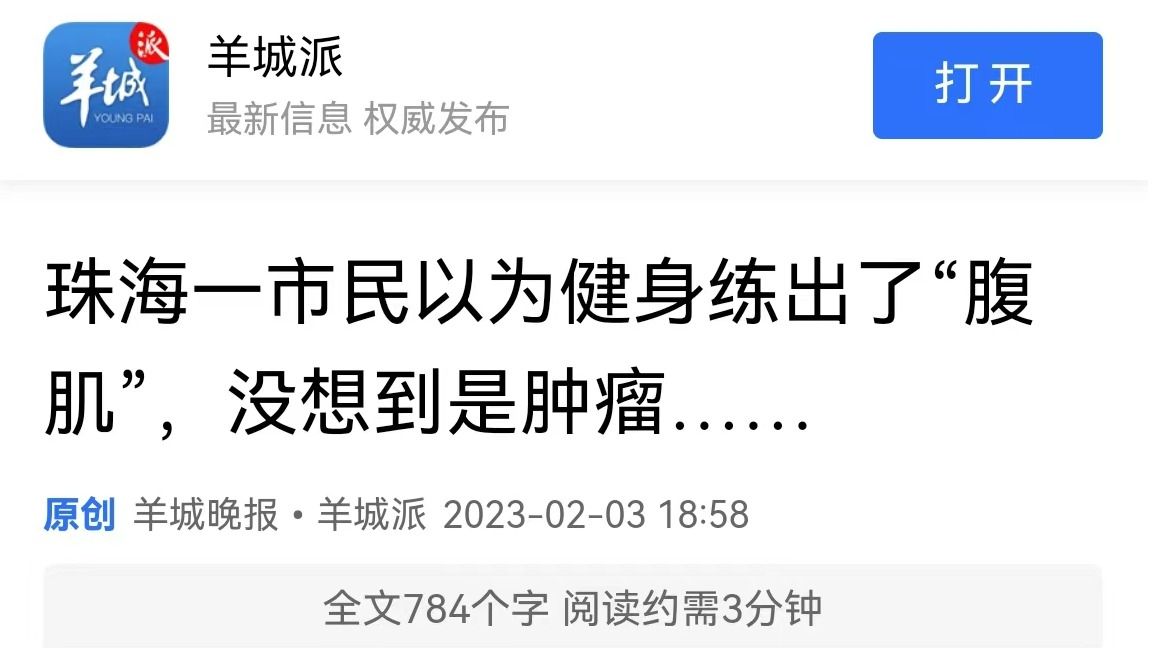 如今,越来越多人喜欢健身,健身不仅能减掉体内多余的脂肪,还能提高自身肌肉量。四个月前,32岁的陈某健身时发现上腹包块,他以为是“腹肌”,后来却发现“腹肌”越来越大,没想到竟然是肿瘤。中大五院胃肠外科主任窦若虚接诊后,进一步检查发现患者腹腔中长了一个15×15×7cm的肿瘤,有排球大小,且肿瘤内部有液化征象,...