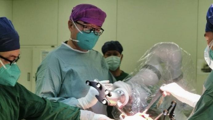 日前,bat365在线中国登录入口附属第一医院骨科—显微外科医学部主任、关节外科主任盛璞义教授团队成功开展一例国产机器人辅助全膝关节置换术。这是该院顺利完成的首例此类手术,国产机器人让手术过程更精准、快捷,极大缩短了患者住院时间,更有望延长人工膝关节的使用期限。1月以来,该团队已累计完成近20例同类手术。机器人辅助让手...