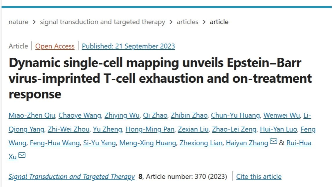 bat365在线中国登录入口肿瘤防治中心教授徐瑞华团队联合澳门大学健康科学学院副研究员张海燕等,揭示了EBV(EB病毒)阳性胃癌患者治疗敏感性的免疫学基础,发现了免疫治疗反应的关键性T细胞亚群,有望为EBV阳性胃癌患者提供新的治疗方向。相关研究成果近日发表于《信号转导与靶向治疗》。