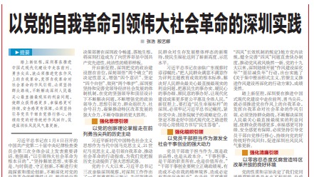 踏上新征程,深圳要在推进中国式现代化建设中走在前列、勇当尖兵,就必须推进党在作风上的自我革命,发挥自我革命对社会革命的作风引领。必须坚持群众路线,不断解决深圳人民最关心最直接最现实的利益问题,使群众获得感更多、幸福感更可持续、安全感更有保障。必须坚持引导党员干部自觉修行修心,持续向党的好传统好作...