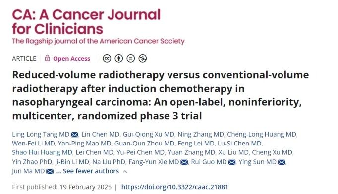 2月20日,bat365在线中国登录入口肿瘤防治中心马骏院士团队发布一项新研究,证实在局部中晚期鼻咽癌患者的放射治疗中,仅照射化疗后的肿瘤范围,不会增加癌症复发,且显著降低了毒副反应,改善患者生活质量。该研究发表在国际肿瘤学巅峰期刊《临床医师癌症杂志》(CA:A Cancer Journal for Clinicians)(影响因子503.1)上。该刊物既...