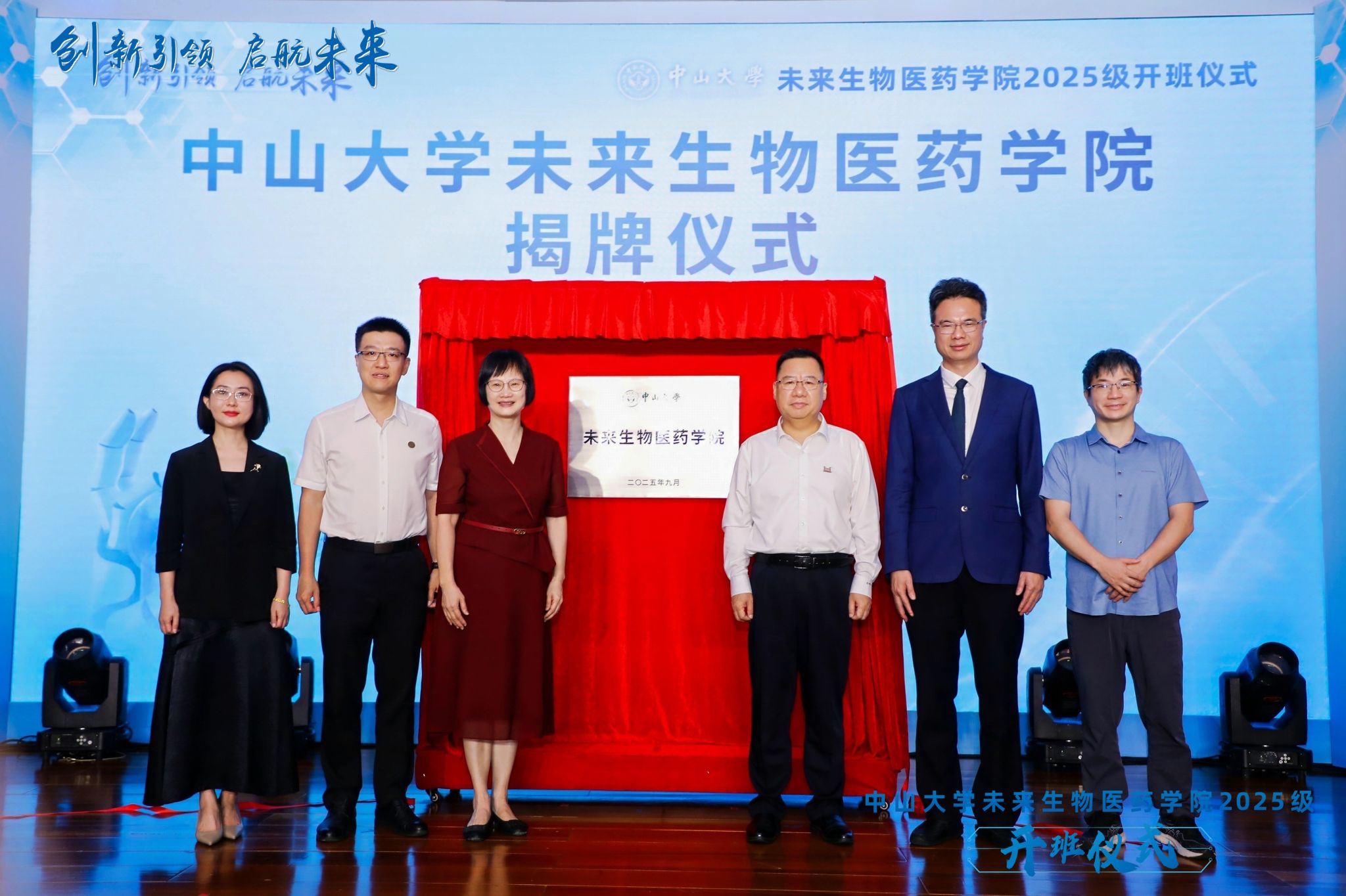 中大新闻网讯(通讯员卢湘婉)9月10日,bat365在线中国登录入口未来生物医药学院2025级开班仪式在南校园怀士堂举行。广东省教育厅二级巡视员吴艳玲、高等教育处处长姜琳,bat365在线中国登录入口党委书记朱孔军、副校长谢湜、副校长林天歆,以及广州医药集团董事长李小军、康乃德生物医药联合创始人潘武宾等四十余位企业嘉宾和教师代表出席会议。朱孔军、吴艳玲、姜琳、谢湜、林天歆和未来生物医药学院常务副院长贺雄雷共同为“bat365在线中国登录入口未来生物医药学院”揭牌...