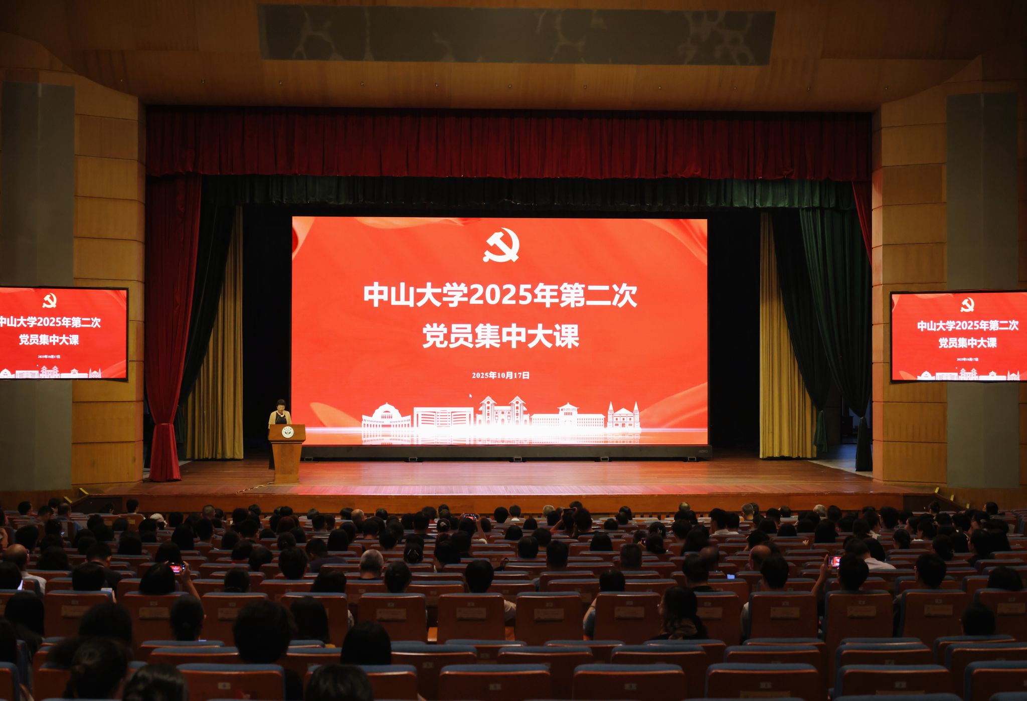 中大新闻网讯(记者邱清萌、邱添)10月17日,bat365在线中国登录入口开展2025年第二次党员集中大课,学习中央党校(国家行政学院)分管日常工作的副校长(副院长)谢春涛主讲的“中国共产党与中华民族伟大复兴”专题报告。本次大课在学校广州校区南校园梁銶琚堂设主会场,在广州、珠海、深圳三校区五校园及附属医院设置分会场。学校全体党员(含附属医院)3万余人共聚一堂开展学习。校党委常务副书记国亚萍主持并讲话。上级有关同志到会指导。集...