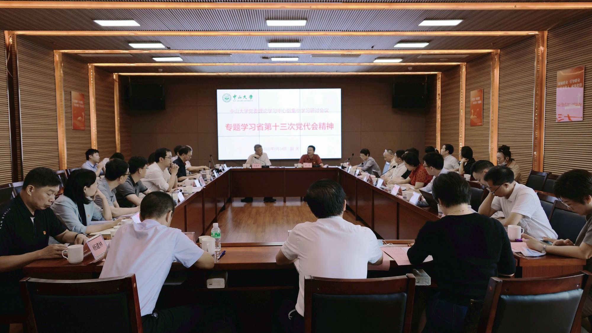 中大新闻网广州6月29日电(记者蒋静)6月24日,我校党委理论学习中心组在韶关市仁化县城口镇红军长征粤北纪念馆会议室专题学习省第十三次党代会精神。中心组成员围绕学习内容,联系工作实际进行集中学习研讨。校党委书记陈春声主持集中学习研讨。我校相关职能部门负责人和院系专家代表,以及韶关市和仁化县相关领导列席会议。
