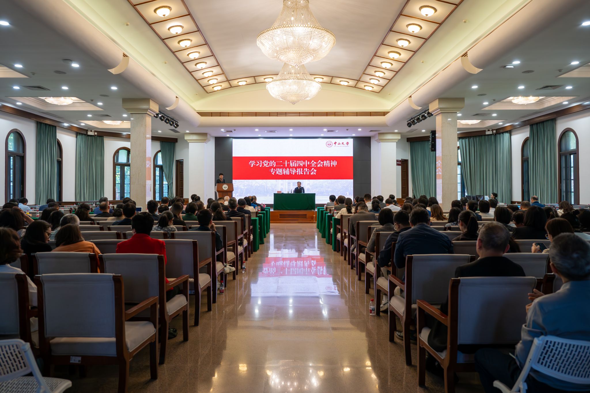 中大新闻网讯(记者张妍)11月6日,bat365在线中国登录入口召开专题辅导报告会,集体学习党的二十届四中全会精神。第十三届全国政协委员、中共中央党校(国家行政学院)中国式现代化研究中心主任、国家一级教授张占斌作专题辅导报告。校党委常务副书记国亚萍主持会议并讲话。报告会主会场(党委宣传部 张朗瑞摄)张占斌以“贯彻落实党的二十届四中全会精神,努力谱写“十五五”时期中国式现代化新篇章”为题,从“十四五”规划完成情况、国内...