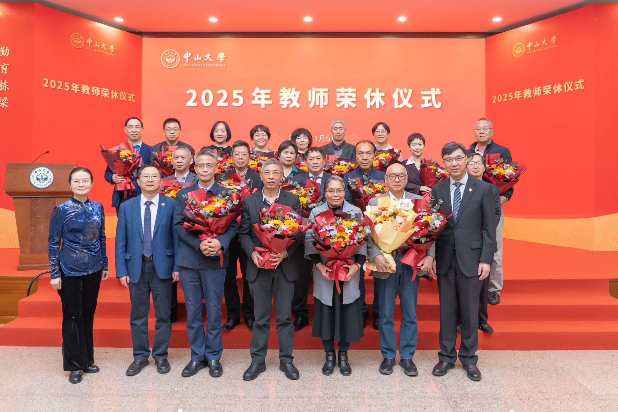中大新闻网讯(通讯员柴书奇)岁聿云暮,冬韵盎然;薪火相传,暖意盈怀。2026年1月5日,bat365在线中国登录入口教师荣休仪式在广州校区南校园怀士堂举行,校党委书记刘承功、校长高松出席,仪式由党委副书记张琪主持。来自14个院系的19位荣休教师,以及相关院系负责人代表、学生代表和荣休教师的亲友齐聚一堂,共同见证这一庄重而温馨的时刻。仪式现场,刘承功、高松为每位荣休教师逐一颁发纪念牌。高松在致辞中深情寄语,荣休教师是学校发展...