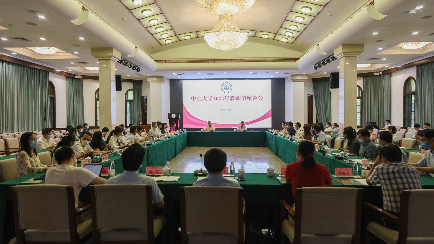 中大新闻网广州9月10日电(记者孙琛、熊予、樊雨瑶)值此教师节与中秋节来临之际,9月9日上午,我校在广州校区南校园怀士堂举行2022年教师节座谈会。围绕“迎接党的二十大,培根铸魂育新人”这一主题,与会代表就心怀“国之大者”,勇担培育时代新人的历史使命展开了热烈讨论,并在会前集体观看了《习近平的教师情》专题片。