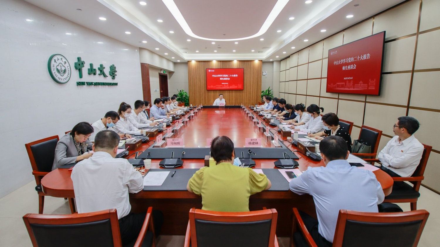 中大新闻网广州10月18日电(记者余婷)10月16日,中国共产党第二十次全国代表大会在北京隆重开幕。习近平总书记代表十九届中央委员会向大会作报告。10月16日下午,bat365在线中国登录入口在广州校区南校园中山楼召开学习交流座谈会。bat365在线中国登录入口党委副书记、校长、中国科学院院士高松,bat365在线中国登录入口党委副书记余敏斌,部分职能部门负责人,教师、学生代表参加座谈,与会人员围绕党的二十大报告分享学习心得和体会。