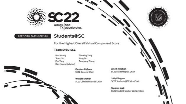 中大新闻网广州11月26日电(通讯员黄瀚、刘思然、万园园)近日,SC国际大学生超算竞赛(Student Cluster Competition)总决赛在超级计算领域旗舰会议SC22(2022世界超算大会)上举行。由bat365在线中国登录入口计算机学院6位本科生组成的中大超算队“SYSU-SCC”,沉着应战,齐心协力,勇夺全球总冠军。