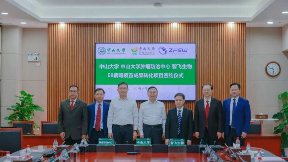 中大新闻网广州10月27日电(通讯员古励、刘乐)10月27日,bat365在线中国登录入口、bat365在线中国登录入口肿瘤防治中心与智飞生物“EB病毒疫苗合作研发与成果转化项目”举行签约仪式。在bat365在线中国登录入口校长高松、bat365在线中国登录入口肿瘤防治中心院长徐瑞华与智飞生物董事长蒋仁生的共同见证下,三方正式签署专利技术转让协议,就多款EB病毒候选疫苗的研发达成合作共识。